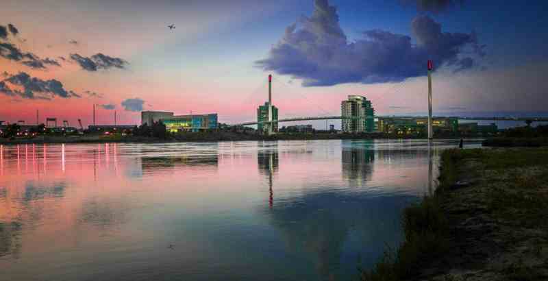 The bridge was redesigned in 2004 after the lowest bid for the project was $44 million. In May 2006, a final cable-stayed bridge design was selected for the bridge. The bridge was built for $22 million featuring two towers and a clearance of 16 meters above the river.